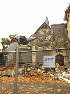 On passe en "coup de vent" (c l'cas de le dire) sur Christchurch car il pleuvait et puis finalement, à part voir les ruines des églises et des immeubles, il n'y a plus grand chose à voir... le centre ville est complètement fermé et gardé par des militaires.