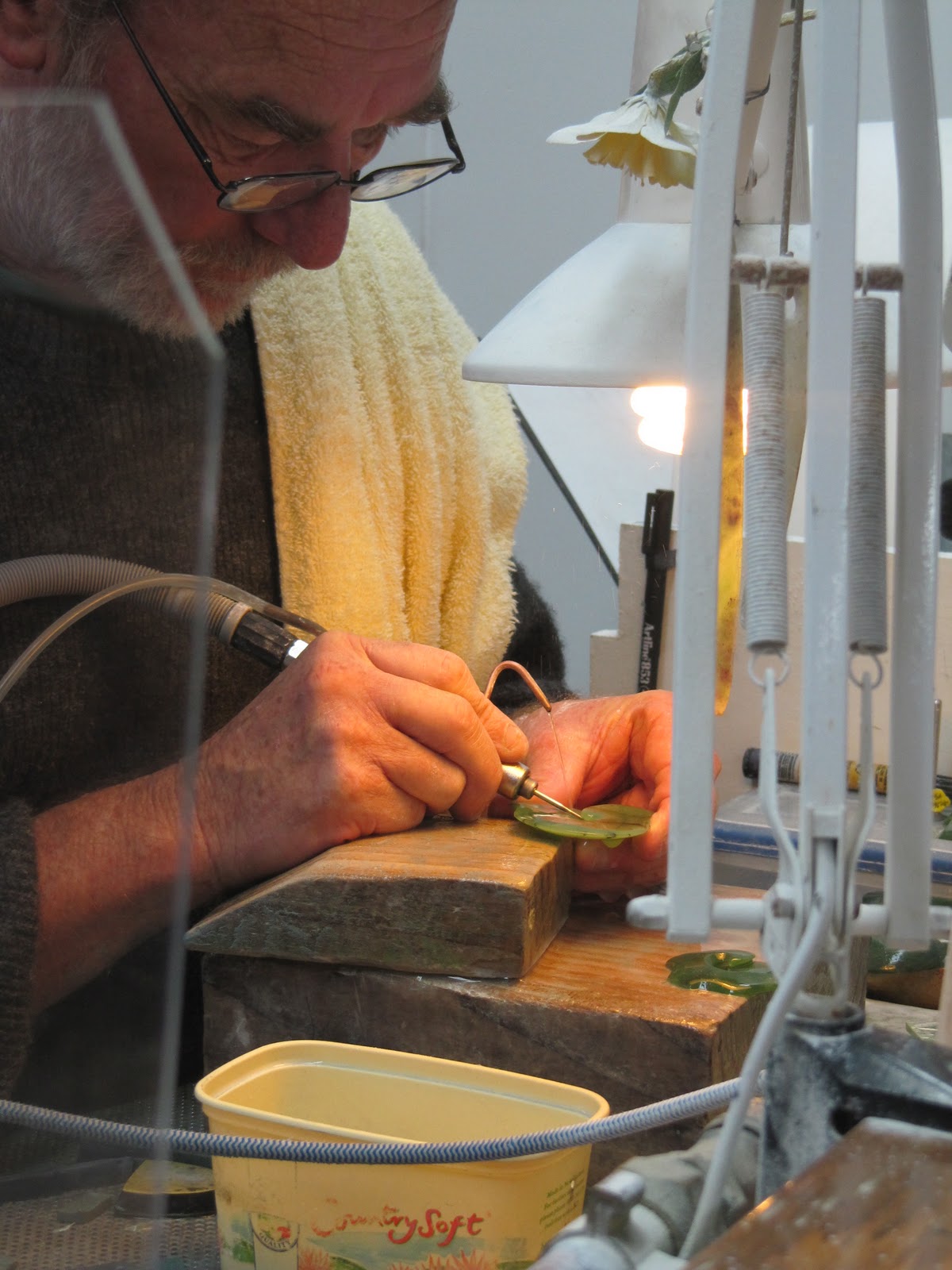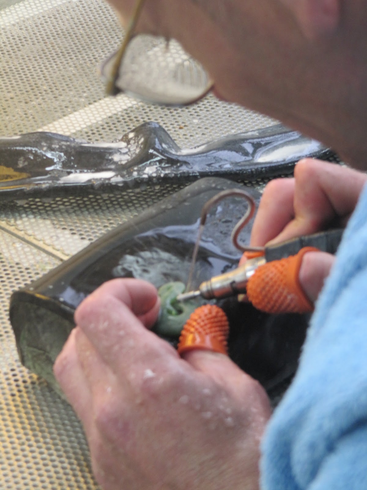ils travaillent avec un jet d'eau (au dessus de ses doigts) je ne sais pas trop pourquoi |